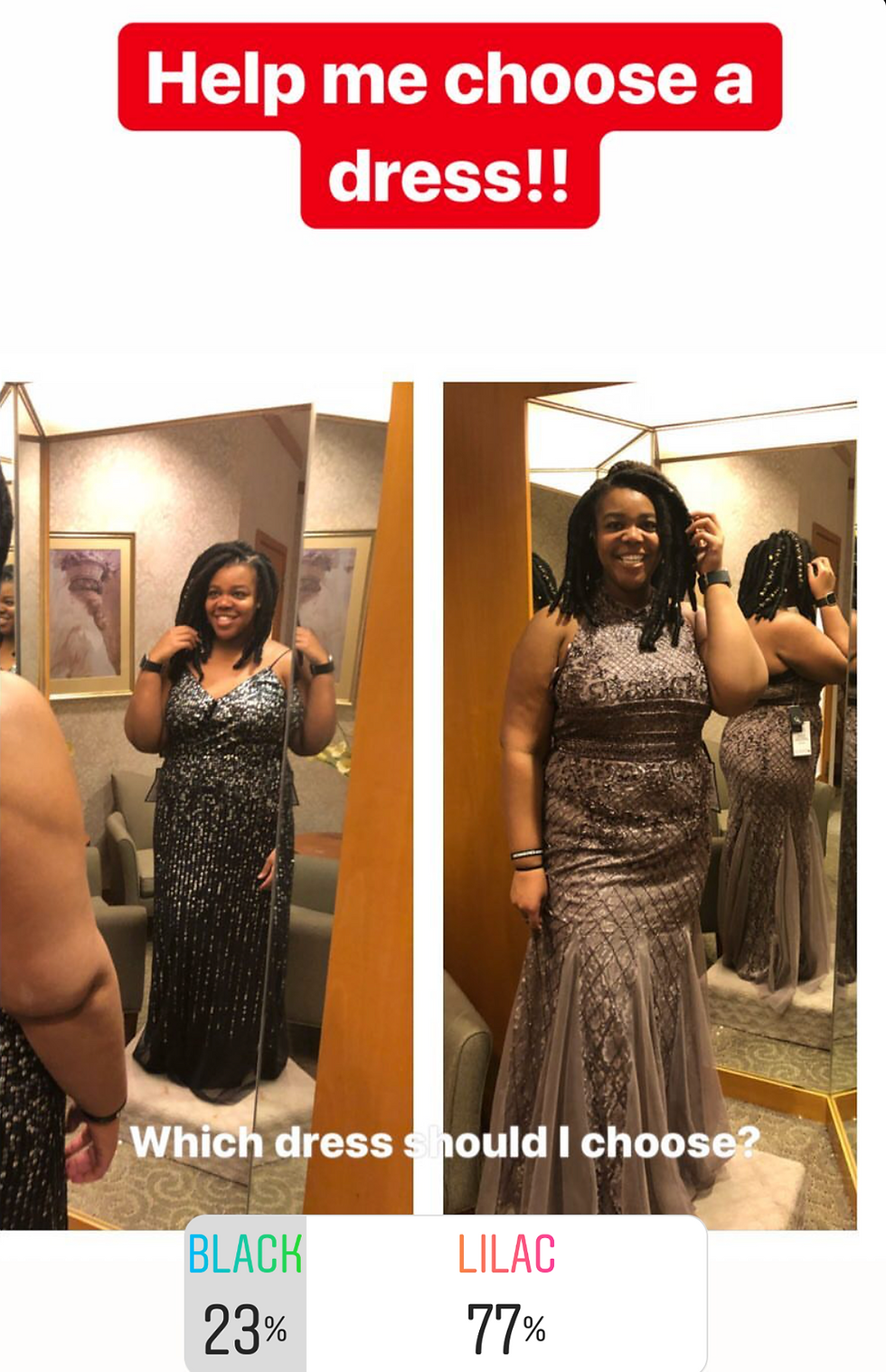 I had a hard time choosing between the black sequined gown and the lilac beaded gown- so I took to Facebook and Instagram to get some opinions!
